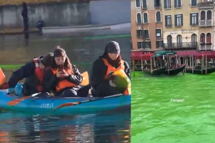 Познатата шведска активистка Грета Тунберг излеа зелена боја во каналите на Венеција, симболично повикувајќи на „еколошко будење“ токму кога завршуваше…