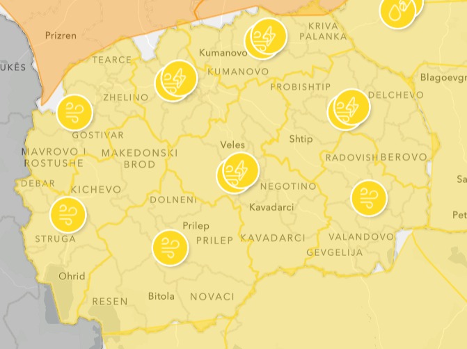Управата за хидрометеоролошки работи издаде жолт аларм за територијата на цела Македонија, за можно силно невреме.