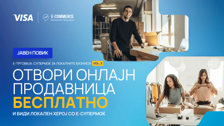 Асоцијацијата за е-трговија на Северна Македонија (АЕТСМ), со поддршка од компанијата Visa, објавува јавен повик во рамки на иницијативата „Е-трговија: Супермоќ за локалните бизниси vol.3“. Оваа иницијатива веќе трета година по ред ги поддржува микро и малите претпријатија кои сѐ уште немаат започнато со онлајн продажба, овозможувајќи им бесплатно да отворат своја е-продавница и да ги унапредат своите дигитални вештини за е-трговија.