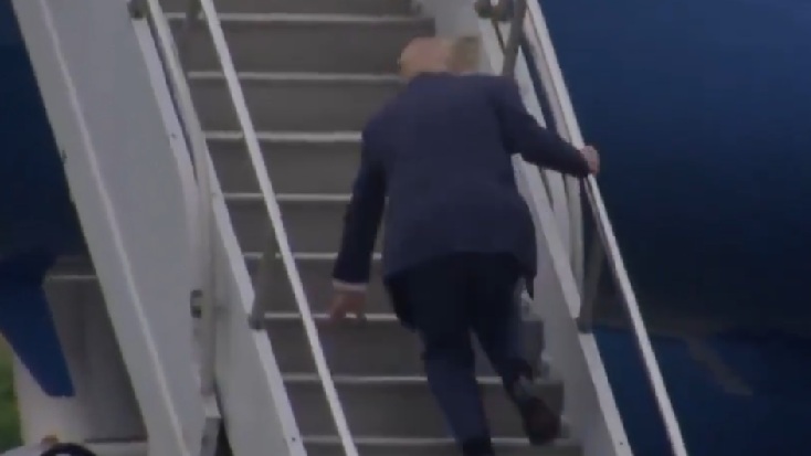 Trump repeated Biden’s move and nearly took a tumble on the stairs