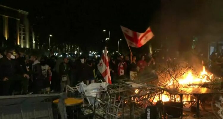 Муртаз Зоделава, членка на опозициската партија Обединето национално движење претходно им рече на десетиците илјади собрани на Плоштадот на слободата во Тбилиси дека следниот чекор ќе биде „преземање на претседателската палата“, откако организаторите на протестот објавија дека „власта се вратила кај народот“.