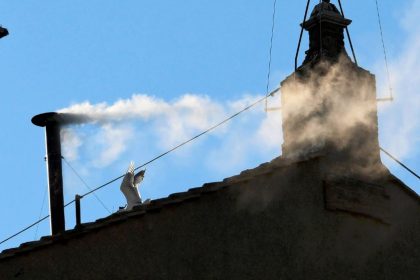 Бел чад се појави од оџакот над Систинската капела. 133-те кардинални собрани во Систинската капела во Ватикан го избраа новиот…
