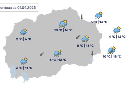 Времето денеска ќе биде променливо облачно со повремени врнежи од дожд и со слаб до умерен северен ветер. Попладне и…