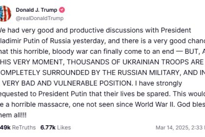 Американскиот претседател Доналд Трамп на својата социјална мрежа Truth Social објави дека во четвртокот САД имале „многу добар и продуктивен“…