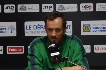 Рускиот тенисер Данил Медведев повторно загуби контрола во четвртфиналниот меч во Дубаи, каде што беше поразен од Талон Грикспор со…