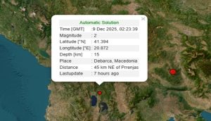 trending_flat Македонија Рано утрово во 1:23 часот е регистриран слаб земјотрес во западниот дел на државата, поточно во околината на Кичево Lorita December 9, 2025