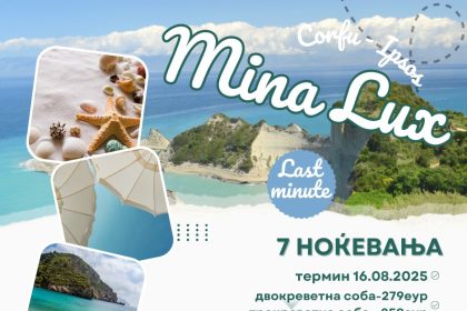 LAST MINUTE - КРФ - ИПСОС Термин: 16.08.2025 / 7 ноќевања 279еур по лице со превоз во двокреветна соба 259еур…