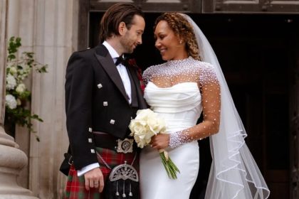 Поранешната „Спајс грлс“ Мел Би (50) се омажи за фризерот Рори Мекфи (37) во Лондон овој викенд. Мел Би носеше…