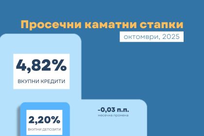 Годишен раст на просечната каматна стапка на вкупните депозити од 0,13 п.п., при што во октомври таа изнесува 2,20%. Просечната…