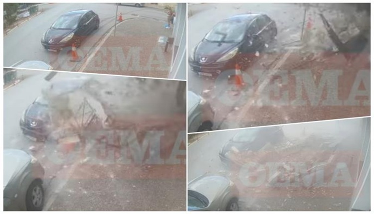 Безбедносните камери забележаа морничава сцена во Грција кога балкон падна на средина од улицата, речиси убивајќи жена.
