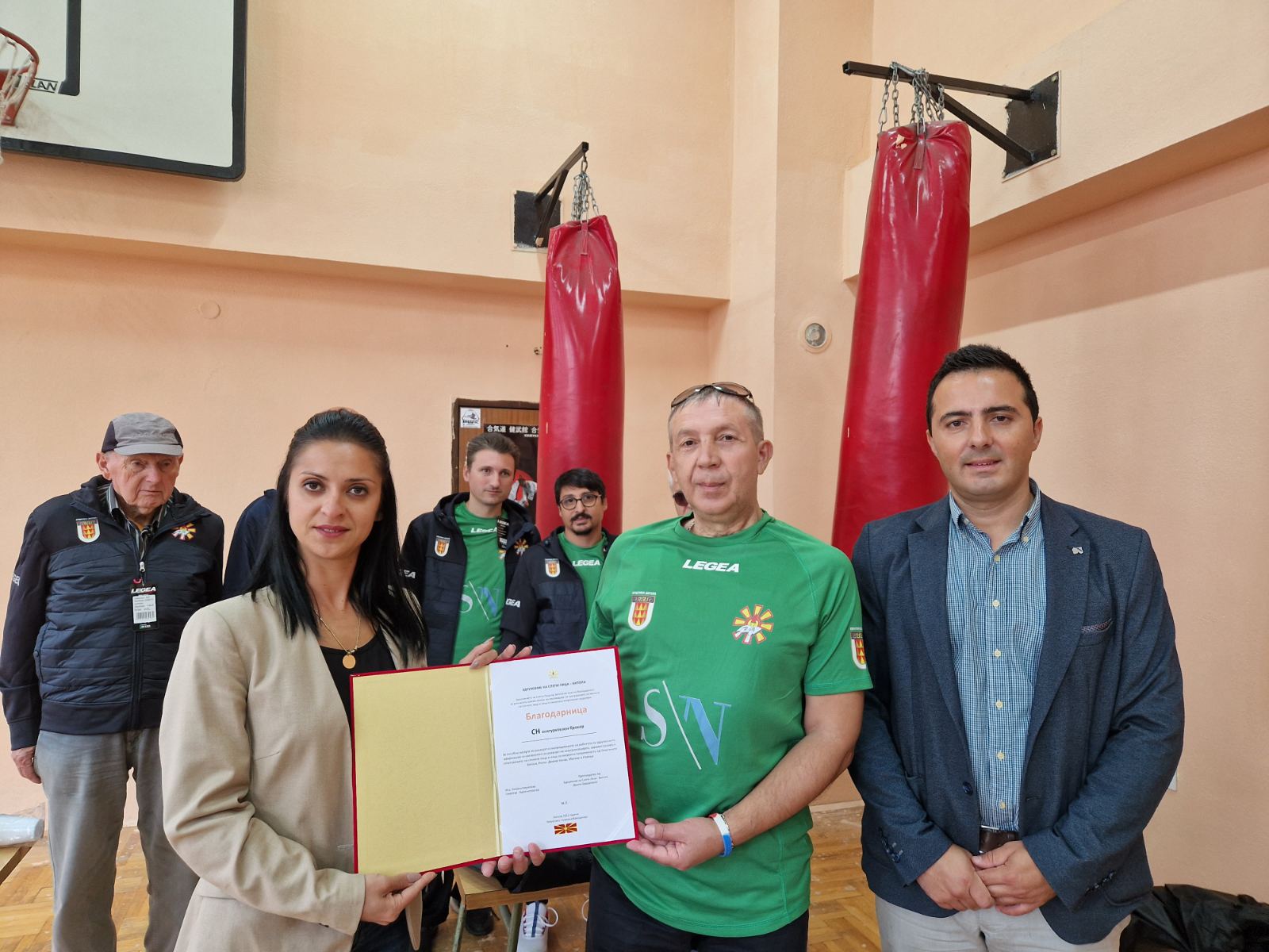 Александра Петровска, раковoдителка на експозитури на СН Осигурителен брокер и Даниел Паришко, раководител на секторот за прием во осигурување, во посета на здружението се запознаа со активностите на спортскиот клуб. Врачувајќи им благодарница за посебни заслуги на СН Осигурителен Брокер во развојот и унапредувањето на работата на здружението, Драгче Брдаровски, претседател на Здружението на слепи лица – Битола рече дека новата спортска опрема има огромно значење за членовите на здружението и спортскиот клуб.