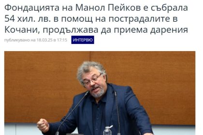 Бугарскиот пратеник Манол Пејков од 16 март до 19 март преку хуманитарна кампања на својата фондација „Манол Пејков и пријатели“…