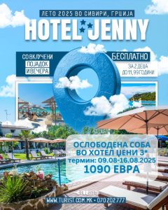 trending_flat Бизнис Туристичка Агенција – Турист Битола: Грција | HOTEL JENNY 3* | Сивири НАЈПРОДАВАНИОТ ФАМИЛИЈАРЕН ХОТЕЛ БЕСПЛАТНО за 2 деца до 11.99 години Lorita July 28, 2025