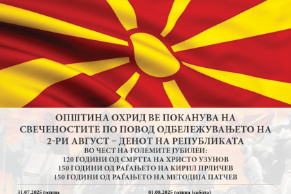 Во рамки на програмата на Општина Охрид за одбележување на 2. Август – Денот на Републиката, вчеравачер во Музејско-културниот центар…