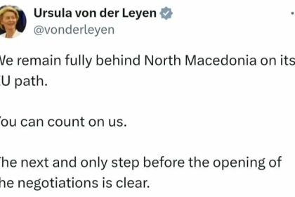 Целосно стоиме зад Северна Македонија на нејзиниот пат кон ЕУ. Може да сметате на нас, напиша на социјалната мрежа Икс …