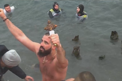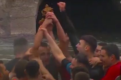 Теодор Јовевски го фати светиот крст што владиката Јосиф го положи во водите на реката Вардар во центарот на Скопје.…