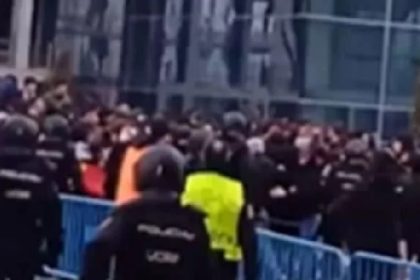 Навивачите на мечот со Словенија во средата во еден глас ја испеаја „Денес над Македонија се раѓа“. Македонската химна грмеше…