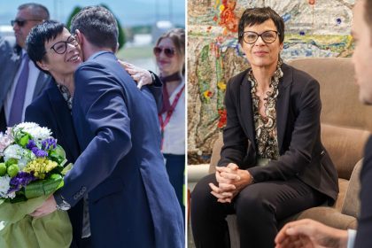 Министерот за надворешни работи и надворешна трговија Тимчо Муцунски со букет цвеќе срдечно ја пречека еврокомесарката Марта Кос на скопскиот…