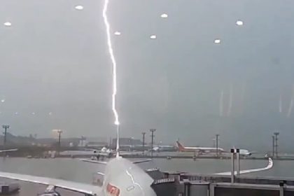 Шокантни снимки од надзорните камери на аеродромот покажуваат удар на гром во авион на Бритиш ервејс за време на невреме…