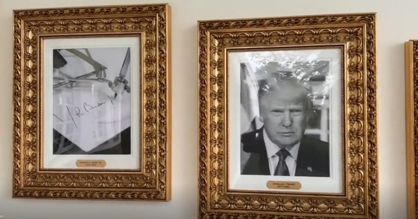 Американскиот претседател Доналд Трамп на ѕидот пред Овалната соба поставил галерија 46 поранешни претседатели на САД, но намерно го изоставил Џо Бајден, јави Ројтерс. Кај рамката за Бајден, стои фотографија од познатиот уред кој го користел Бајден, но и други претседатели – автоматско пенкало(автопен) кое го имитира потписот на претседателот во случај да треба да се потпише документ кога претседателот е отсутен.