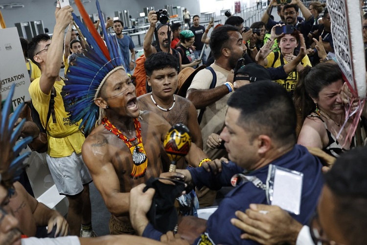 Десетици домородци од племето Тупинамба денеска упаднаа на климатскиот самит COP30 во Бразил и се судрија со обезбедувачите, барајќи климатска акција и заштита на шумите.