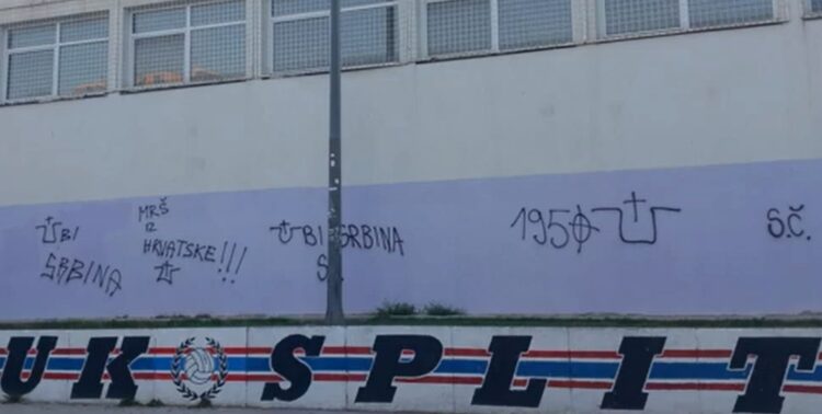 Графити со пораки на омраза кон Србите се појавија денеска на ѕид на училишна сала во Сплит. На ѕидот беа напишани пораките „Убијте го Србинот“ и „Марш од Хрватска“, заедно со усташката буква У.
