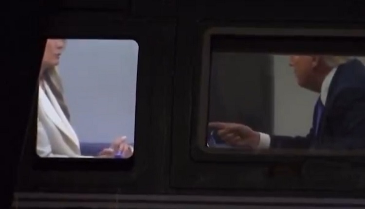 Американскиот претседател Доналд Трамп и првата дама на САД, Меланија Трамп, беа снимени како водат непријатен разговор во претседателскиот хеликоптер, при што претседателот мавташе со прстот кон својата сопруга, додека таа одмавнуваше со главата.
