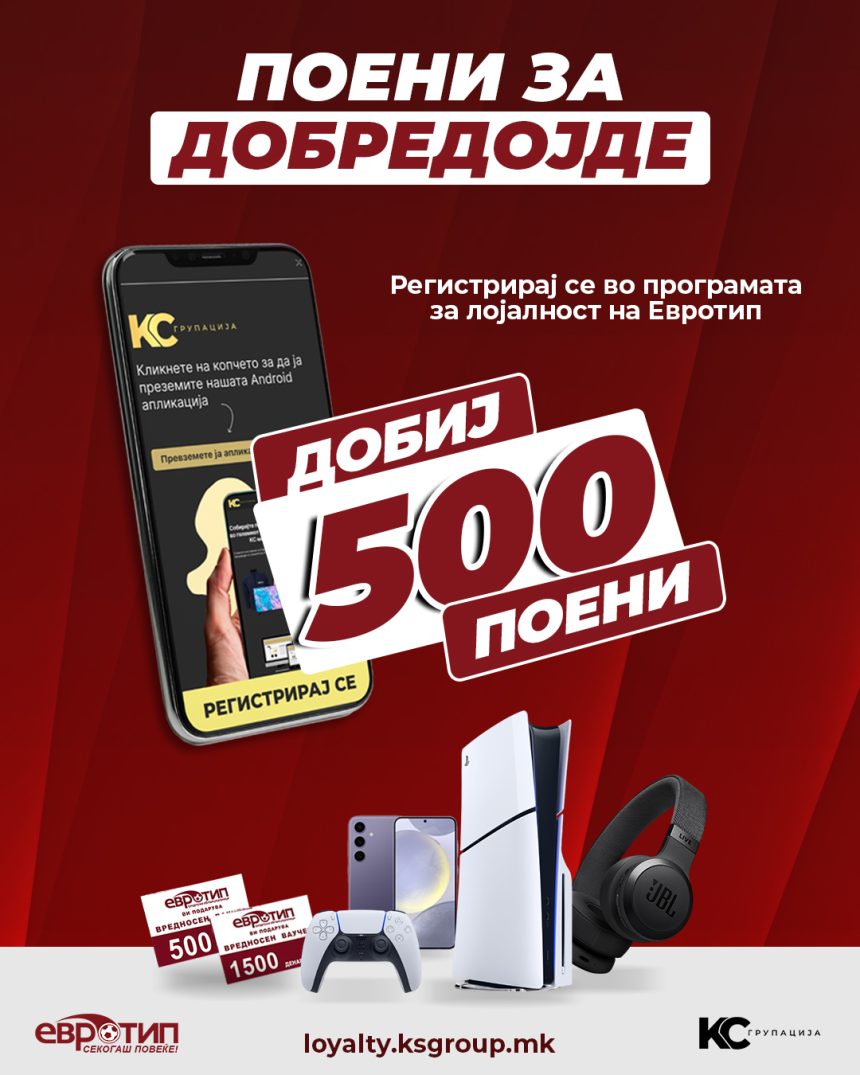 Се приклучуваш на нашата програма за лојалност? Добиваш веднаш 500 ПОЕНИ – БЕСПЛАТНО!