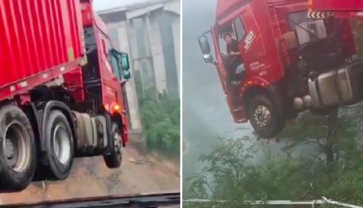Хорор сцени се случуваат во Кина, каде разорните поплави предизвикаа колапс на вијадукт, оставајќи камион да виси буквално над бездна. Возачот, во паника, успеал да го сопре возилото токму пред да падне.
