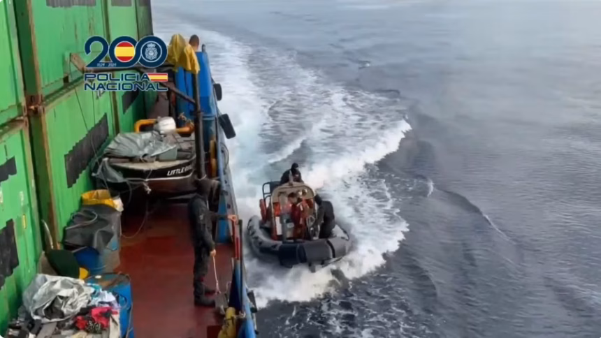 Шпанската полиција објави во неделата дека запленила 6,5 тони кокаин на трговски брод во среда вечерта во Атлантикот, над 1.100 километри југозападно од Канарските Острови, и уапсила девет членови на екипажот.Според полицијата, бродот, кој пловел под танзаниското знаме, испловил од панамското пристаниште Кристобал и бил наменет за шпанскиот пристанишен град Виго. Клучните информации за операцијата, во која била вклучена и морнарицата, им биле доставени на шпанските органи за спроведување на законот од страна на Агенцијата за борба против дрога на САД (DEA).