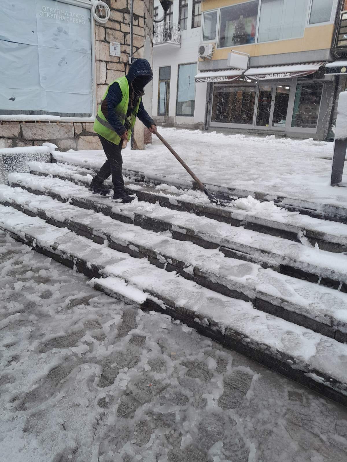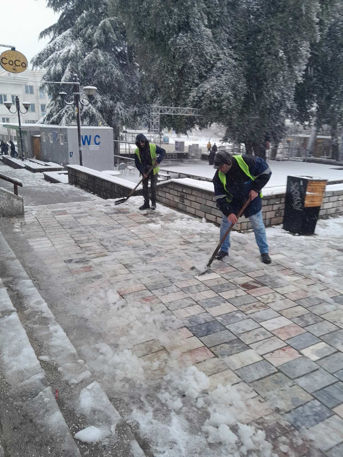 Со целокупната расположива механизација се расчистува снежната покривка од коловозите до населените места кои се наоѓаат на повисоките места, главните прометни сообраќајници и централното подрачје