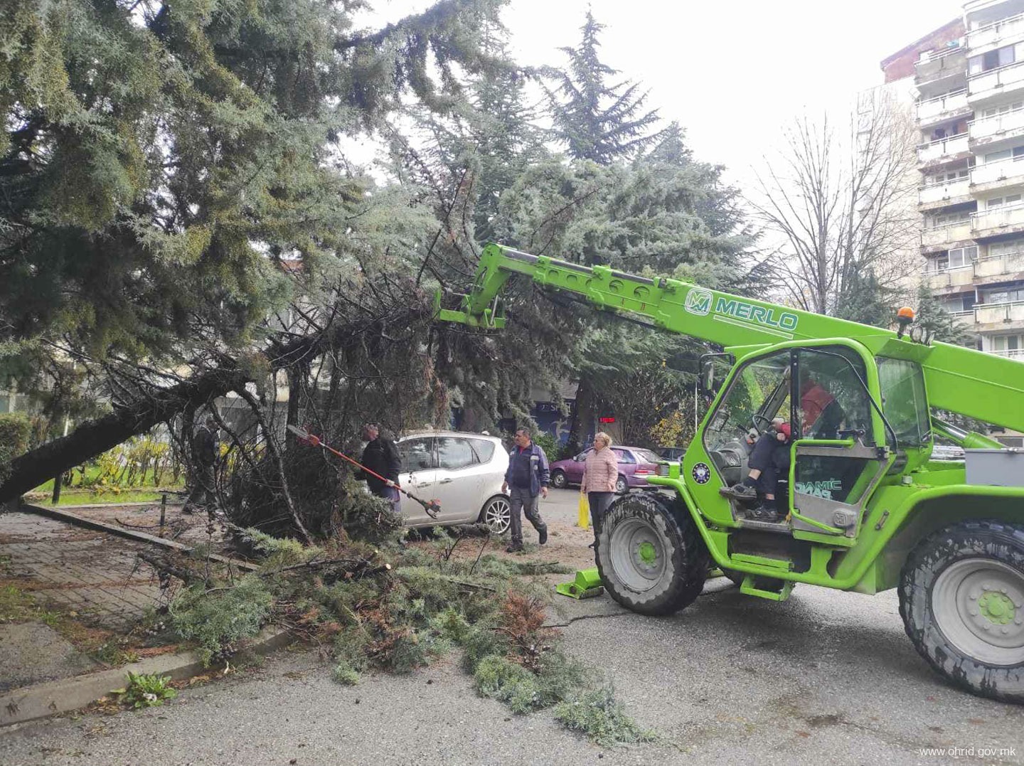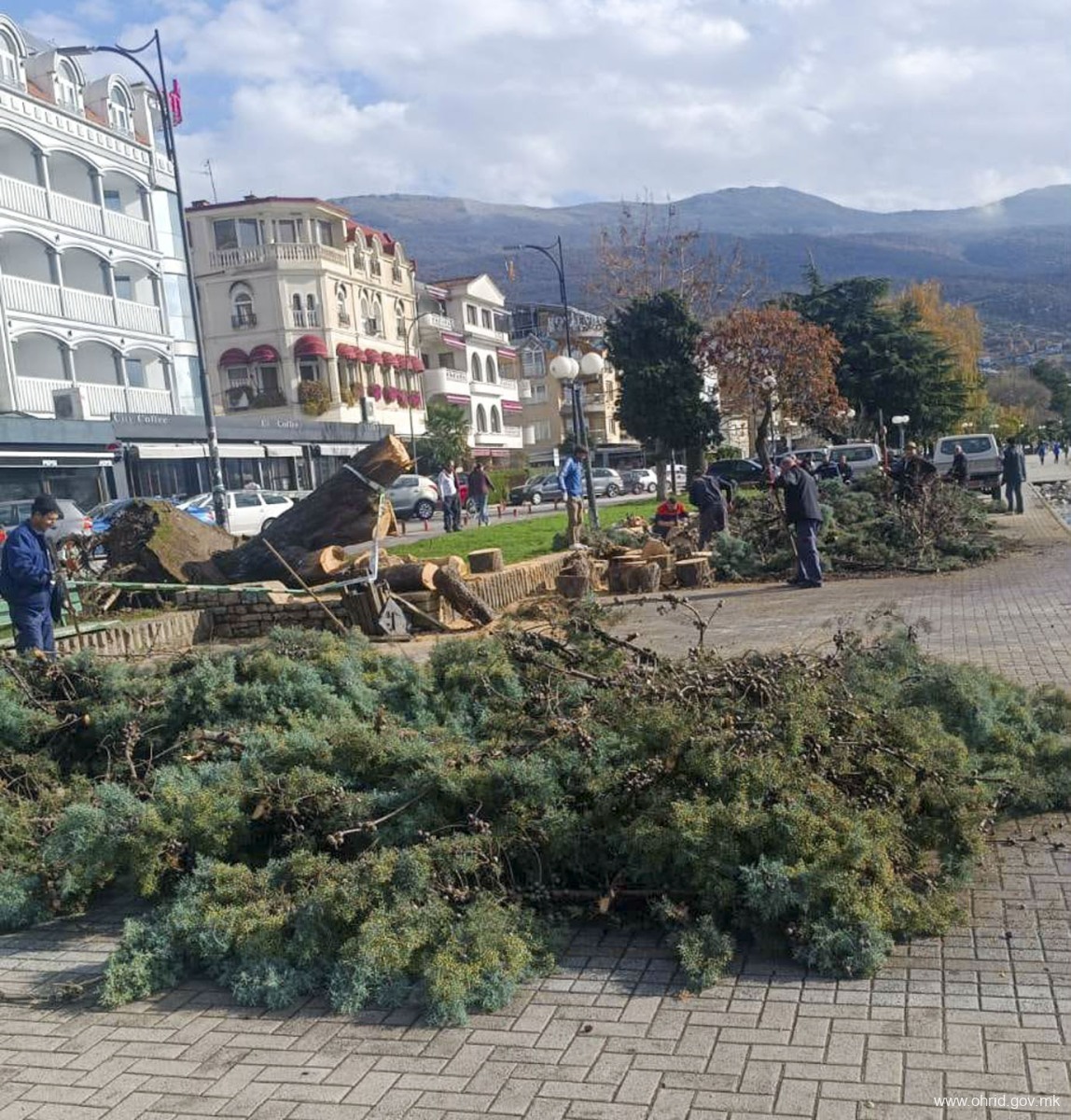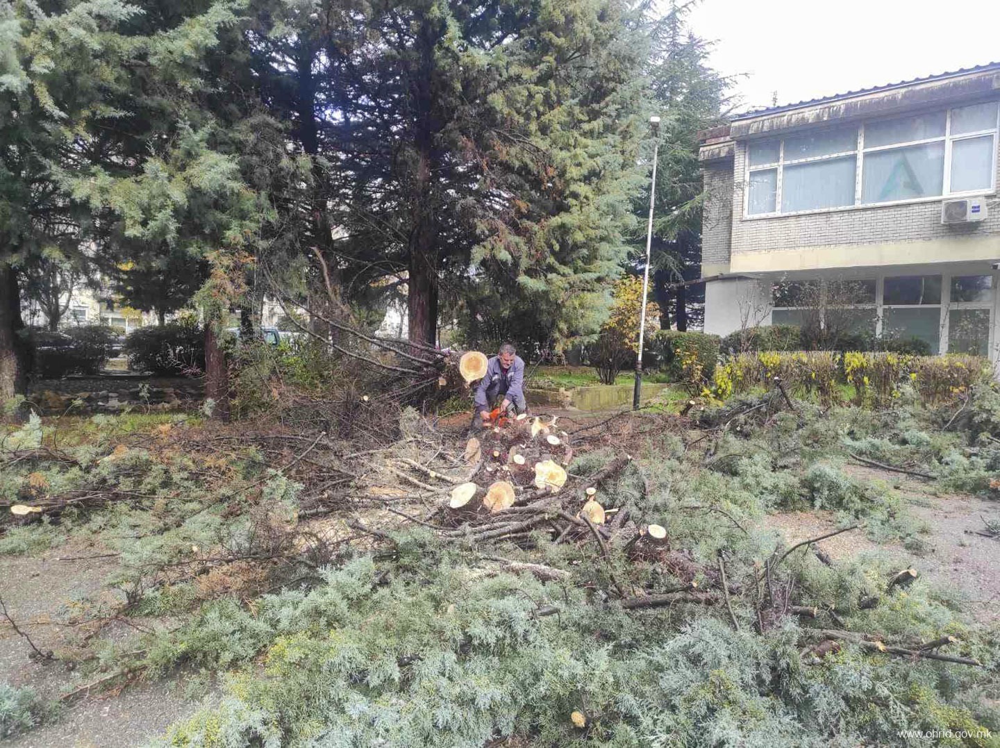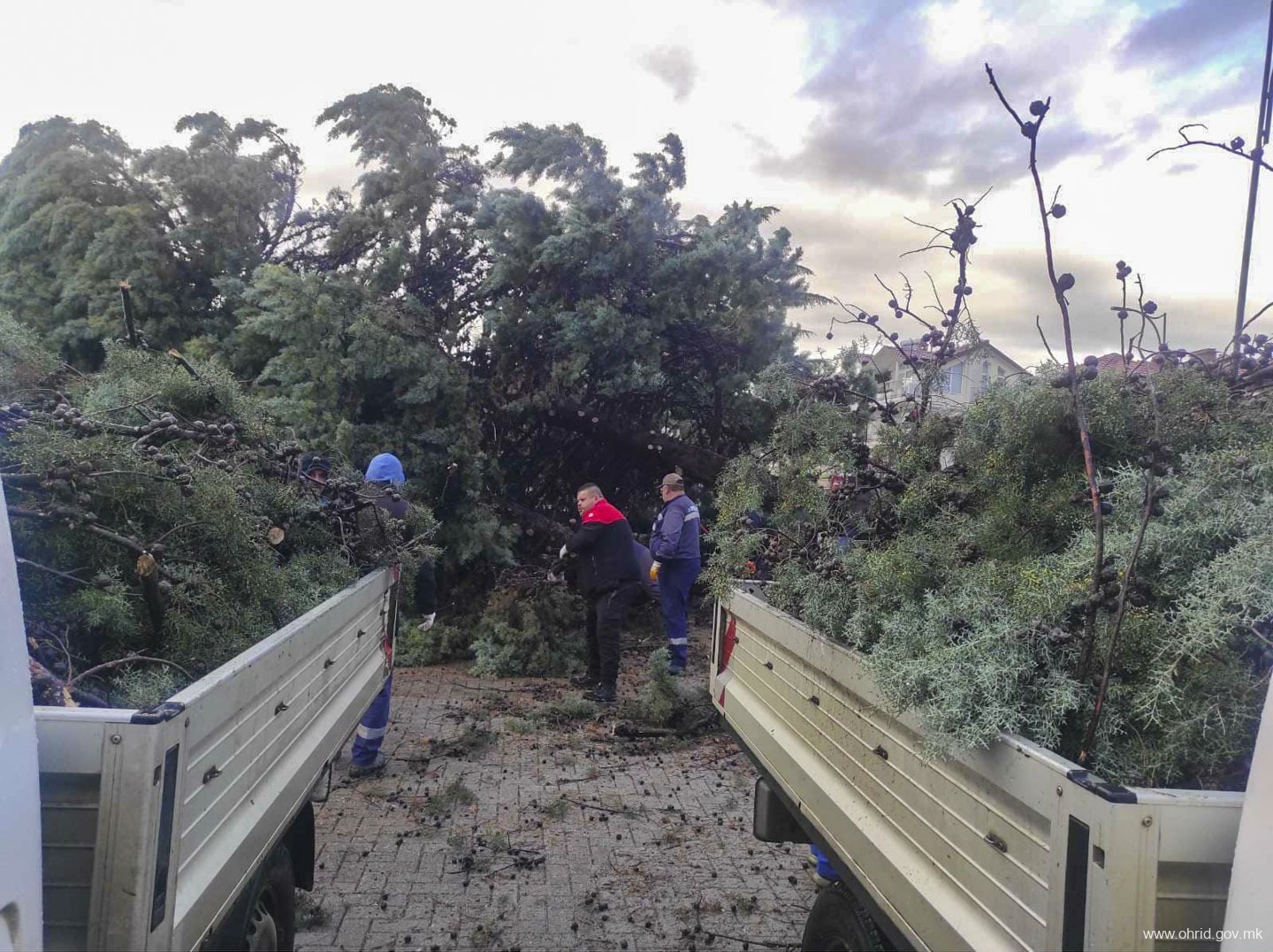 Покрај справувањето со поплавените површини, екипите на јавните претпријатија интервенираа и на неколку локации каде што силниот дожд и ветерот предизвикаа пад на дрвја, со што беа блокирани делови од јавните површини.