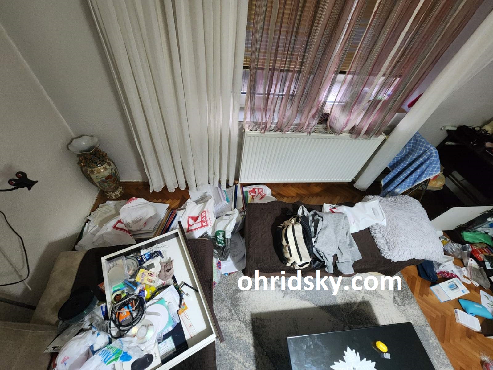 Комплетно девастирана дневна соба – мебелот е превртен, документи и лични предмети се расфрлани низ целиот простор, фиоки се извлечени и содржината расфрлана по подот.