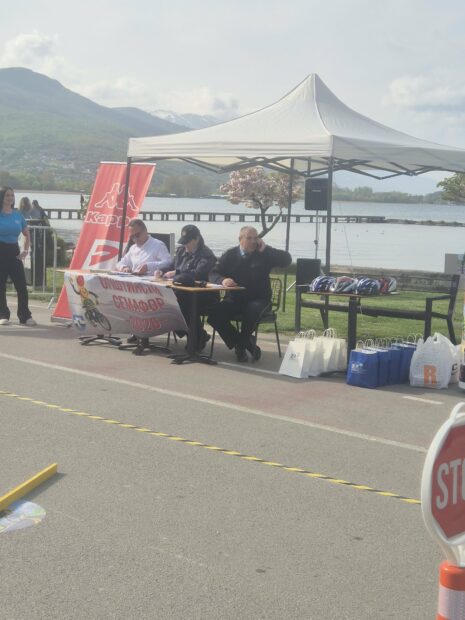 На брегот на Охридското Езеро, со заштитни шлемови на глава и сообраќајни знаци наоколу, младите велосипедисти покажаа дека безбедноста во сообраќајот може да биде и возбудлива и натпреварувачка.