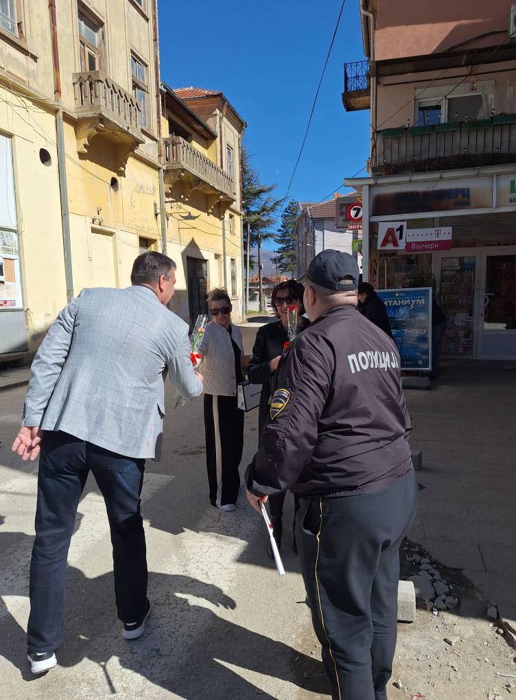 По повод утрешниот празник на припадничките од понежниот пол 8 – ми Март, денеска заедно со претставници од полициската станица од Ресен, реализирана е активност од областа на превенција во сообраќајот,со поделување на свежо цвеќе на учесниците во сообраќајот од понежниот пол.