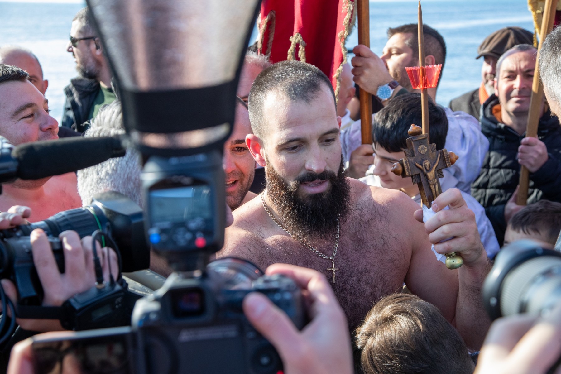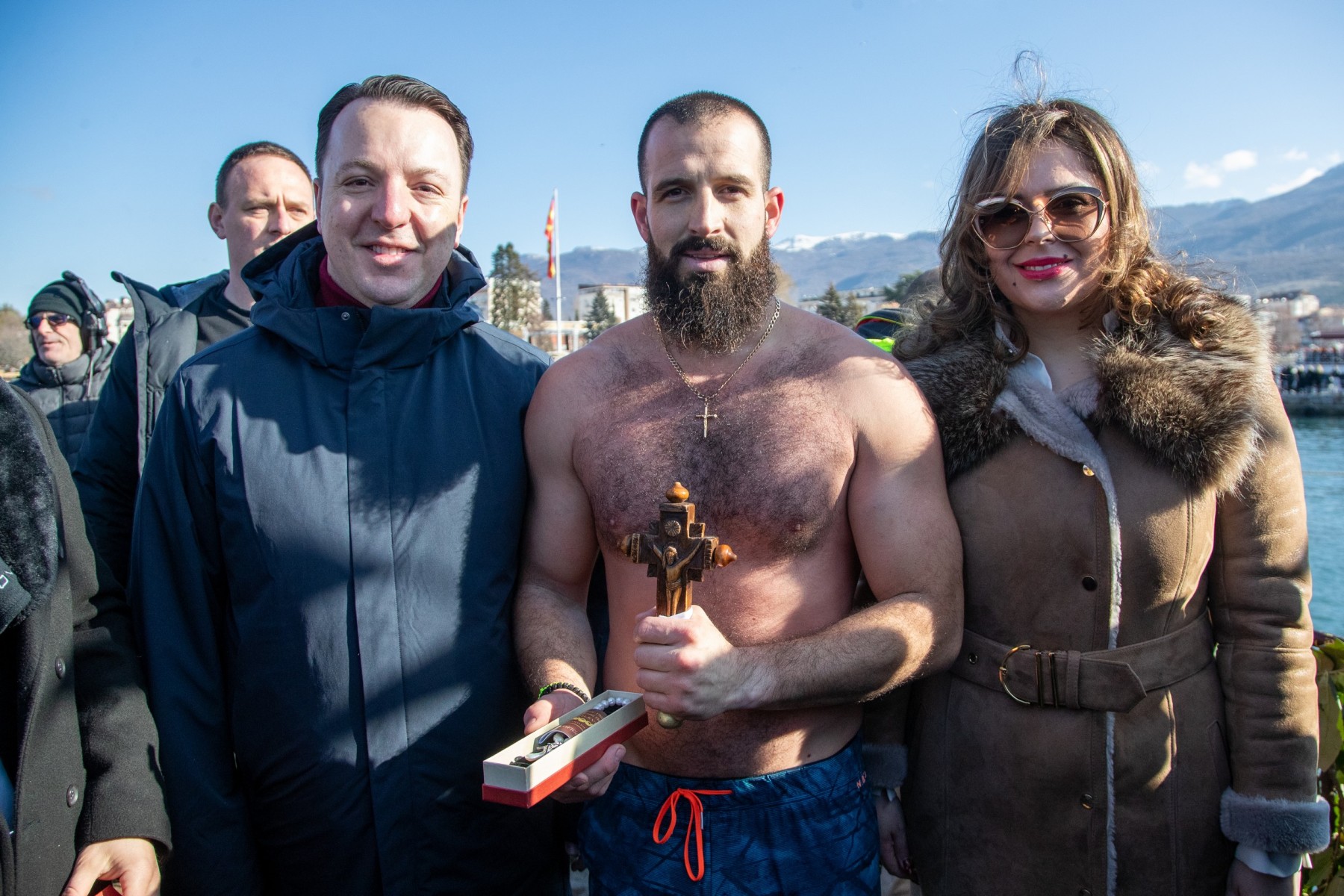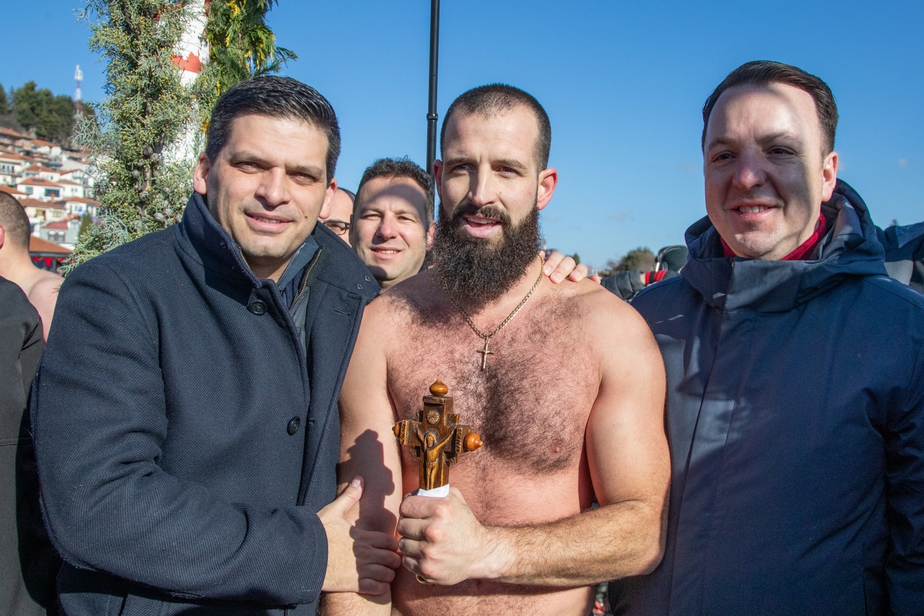 Светиот крст од езерските води го извади Мартин Гоџо од населбата Варош. Тој беше даруван од градоначалникот Кирил Пецаков, кој му упати честитки и желби за здравје, среќа и благосостојба. Честитки на Гоџо лично му упатија и претседателката на Република Македонија, Гордана Силјановска-Дафкова, како и заменик претседателот на Владата и министер за транспорт и врски, Александар Николоски.
