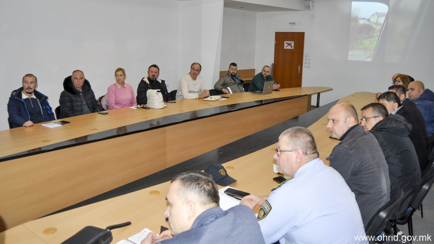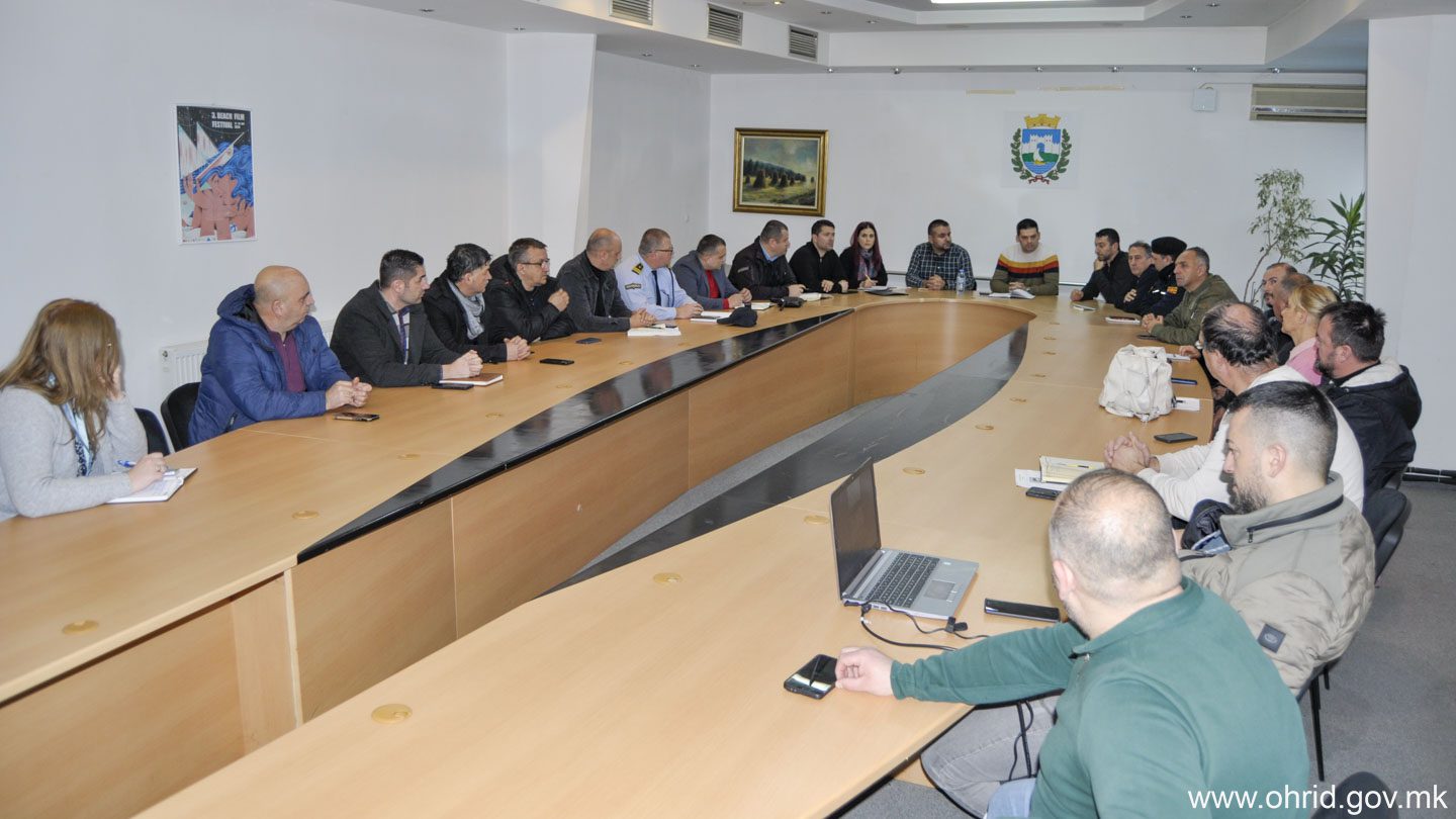 Во врска со настанатата состојба, денеска градоначалникот Kирил Пецаков, одржа состанок со Кризниот штаб за заштита и спасување на Општина Охрид, на кој покрај претставници од јавната администрација присуствуваа претставници на Центарот за управување со кризи, Дирекцијата за заштита и спасување, СВР Охрид, Јавните претпријатија, Противпожарната единица и сите останати надлежни институции.