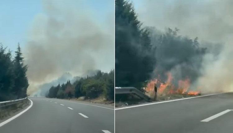 Избувна пожар пред кумановската патарина на автопатот Скопје–Куманово, објави 24 инфо.
