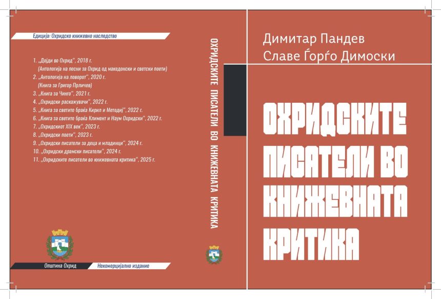 Во издание на општина Охрид, деновиве од печат излезе книгата „Охридските писатели во книжевната критика“, што ја приредија авторите Димитар Пандев и Славе Ѓорѓо Димоски.