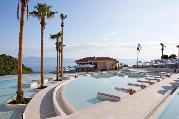 Уживајте во луксуз, релаксација и волшебна атмосфера во еден од најубавите хотели во Афитос. 🌊☀️