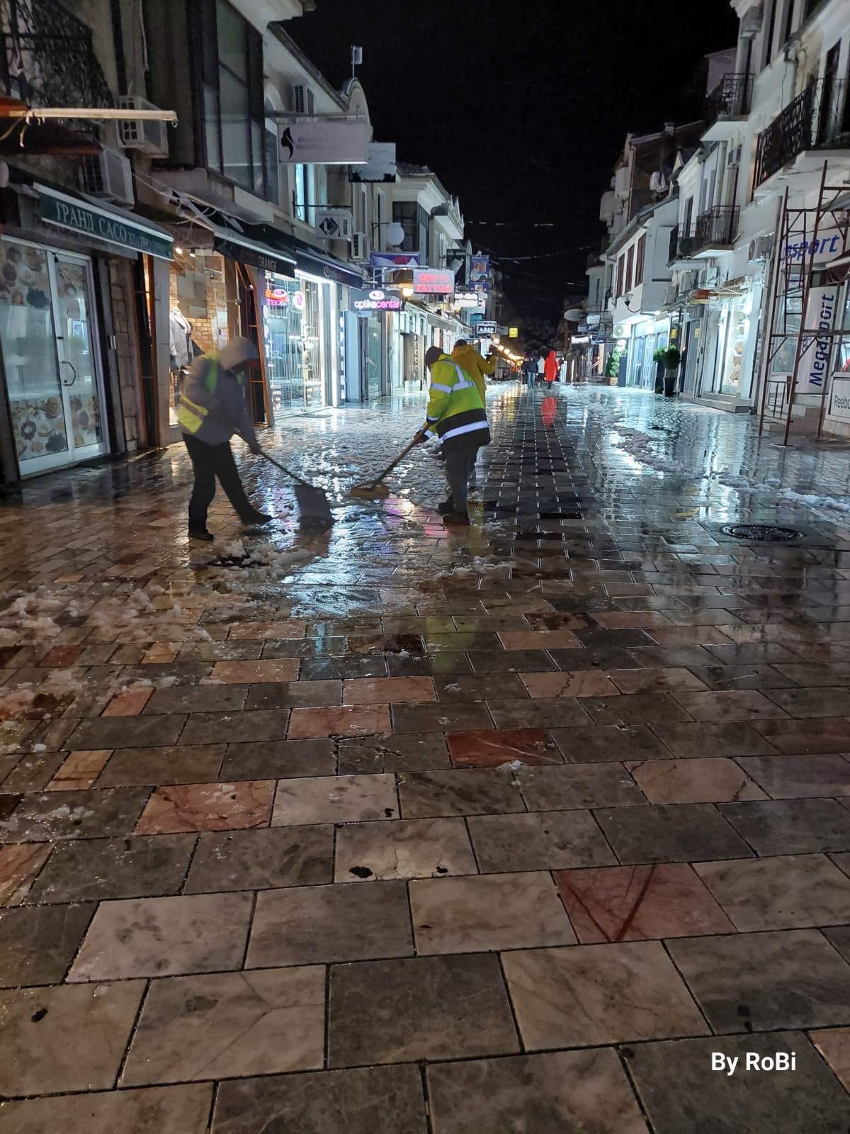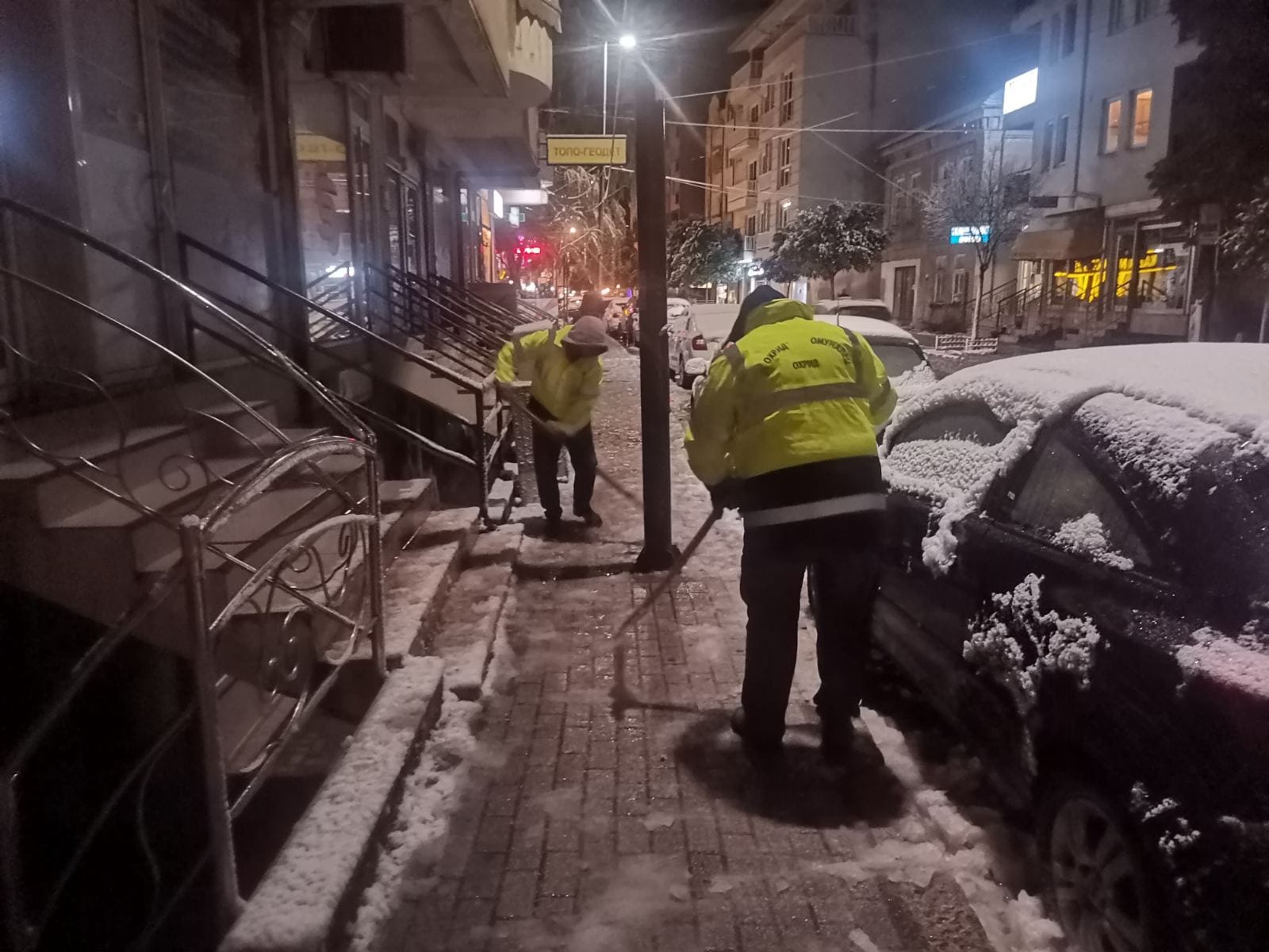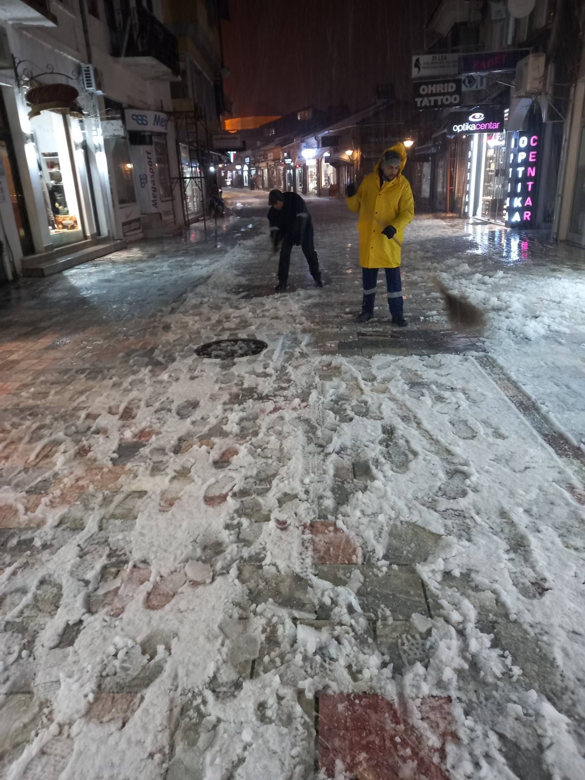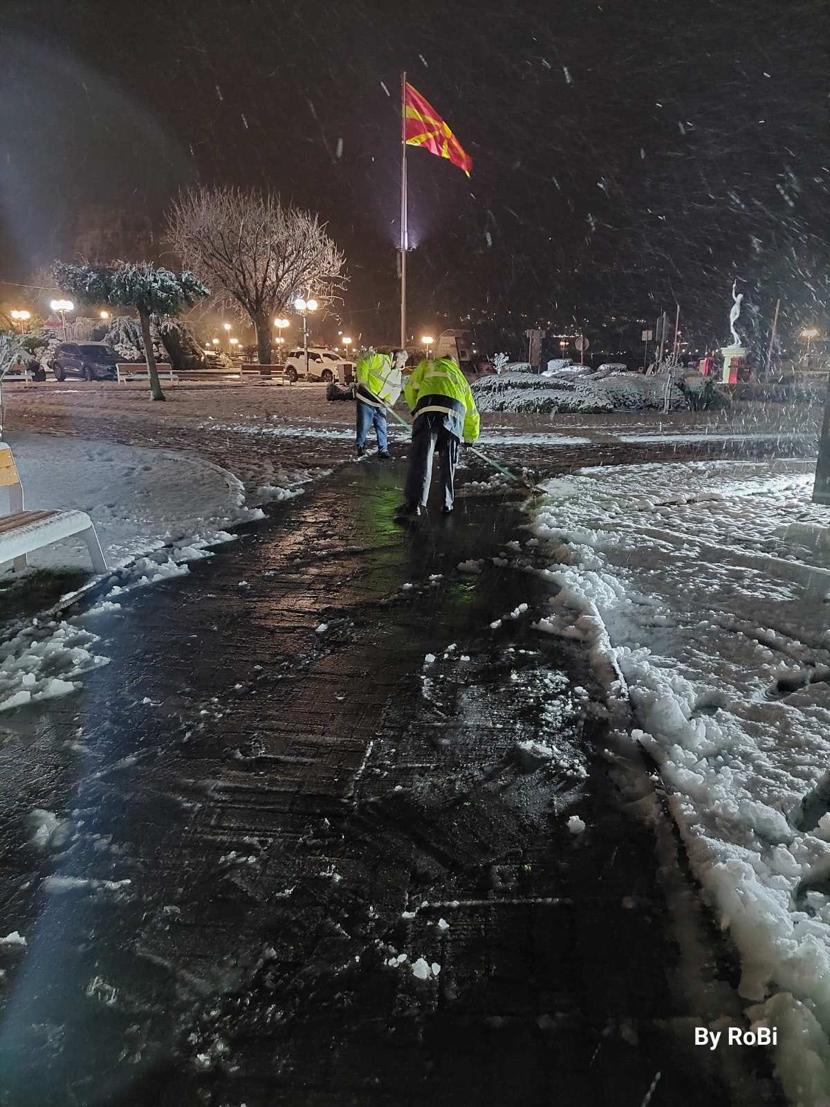 Ангажирана беше целокупната расположива механизација и дежурните екипи кои го расчистуваа снегот од јавните пешачки површини и тротоари
