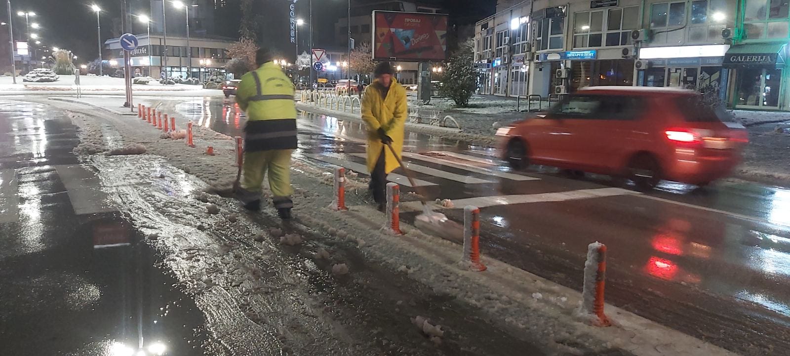 По коловозите се интервенираше со специјална механизација за чистење на снежната покривка и се нанесуваа абразивни средства