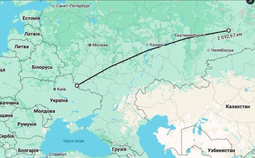 Се чини дека дронот испален од украинската граница успеал да прелета  и да удри во областа на Тјумењ, длабоко во Сибир, некаде меѓу Јекатеринбург и Чељабинск.