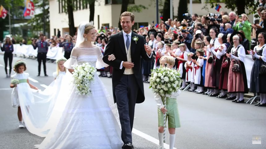 Невестата блескаше во лелеава венчаница од фина чипка, дополнета со луксузна круна што ја нагласи кралската силуета. Церемонијата се одржа во катедралата Св. Флорин, а приемот во историскиот семеен замок над Вадуц, каде што гостите уживаа во класичен кралски амбиент.