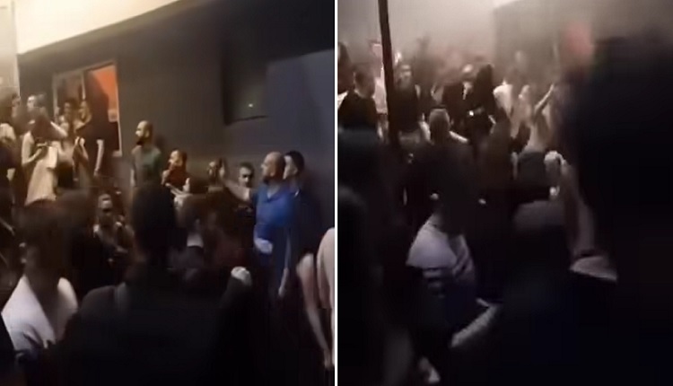 На ова видео всушност се гледа паничното бегање и борбата за живот на присутните, кои бегаат и врескаат во обид да спасат жива глава.