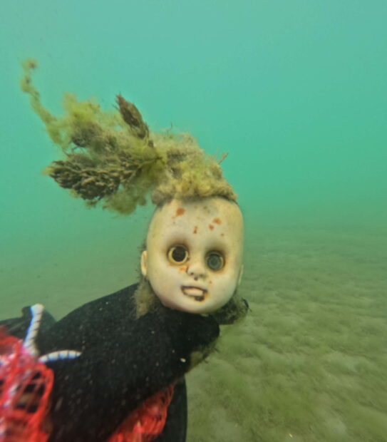 Меѓу наодите имаше и вистинска изненадувачка „туристичка атракција”, стара кукла со алги наместо коса, лебдечка под вода во зеленкастата тишина. Иако необично, и таа заврши во мрежата и беше изнесена на сончева светлина, заедно со сиот останат подводен отпад.