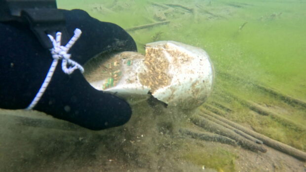 Во зеленкастите длабочини на езерото, нуркачите наидоа на сè она што не треба да биде таму. Пластични кеси и фолии лежеа директно врз дното, скршени шишиња од стакло бија закопани во песокот, алуминиумски тавчиња, картон и парчиња ткаенини беа распрснати помеѓу подводната вегетација. Дел од рибарска опрема и мрежест материјал беше заплеткан во дното, претставувајќи директна закана по рибниот свет на езерото.