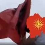 На фотографиите се гледа дека се поставени три знаменца – македонското, албанското и знамето на ЕУ.