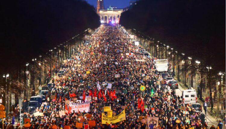 Околу 160.000 луѓе учествуваа на демонстрациите во Берлин против екстремната десница и зближувањето меѓу конзервативната десница и екстремната десница во Германија, забележано претходно оваа недела во врска со законодавните мерки за ограничување на имиграцијата, изјави портпарол на берлинската полиција.