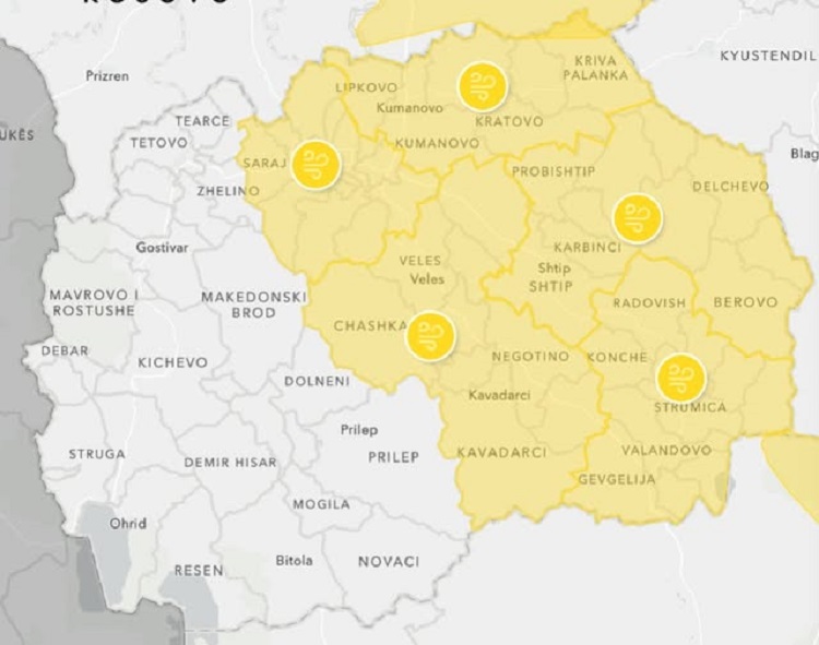 На фотографијата која ја сподели УХМР прикажано е кои делови од Македонија ќе бидат зафатени со силен ветер.